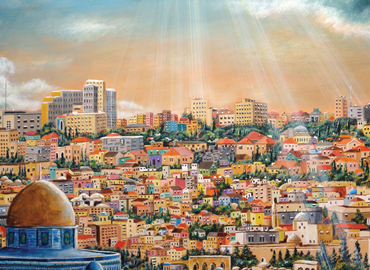 Marnie Freeman tells the story behind her painting called "Pray for the Peace of Jerusalem" as she presents the original to Glenn Beck.